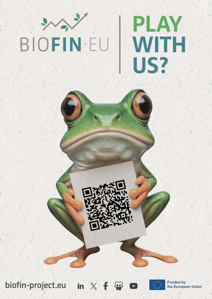 To further increase engagement and project visibility, RAINNO developed an interactive online quiz focused on the themes of the event. The quiz could be accessed directly through a QR code displayed at the booth, offering participants a fun and informative way to connect with BIOFIN-EU and learn more about biodiversity, finance, and sustainable food systems.
